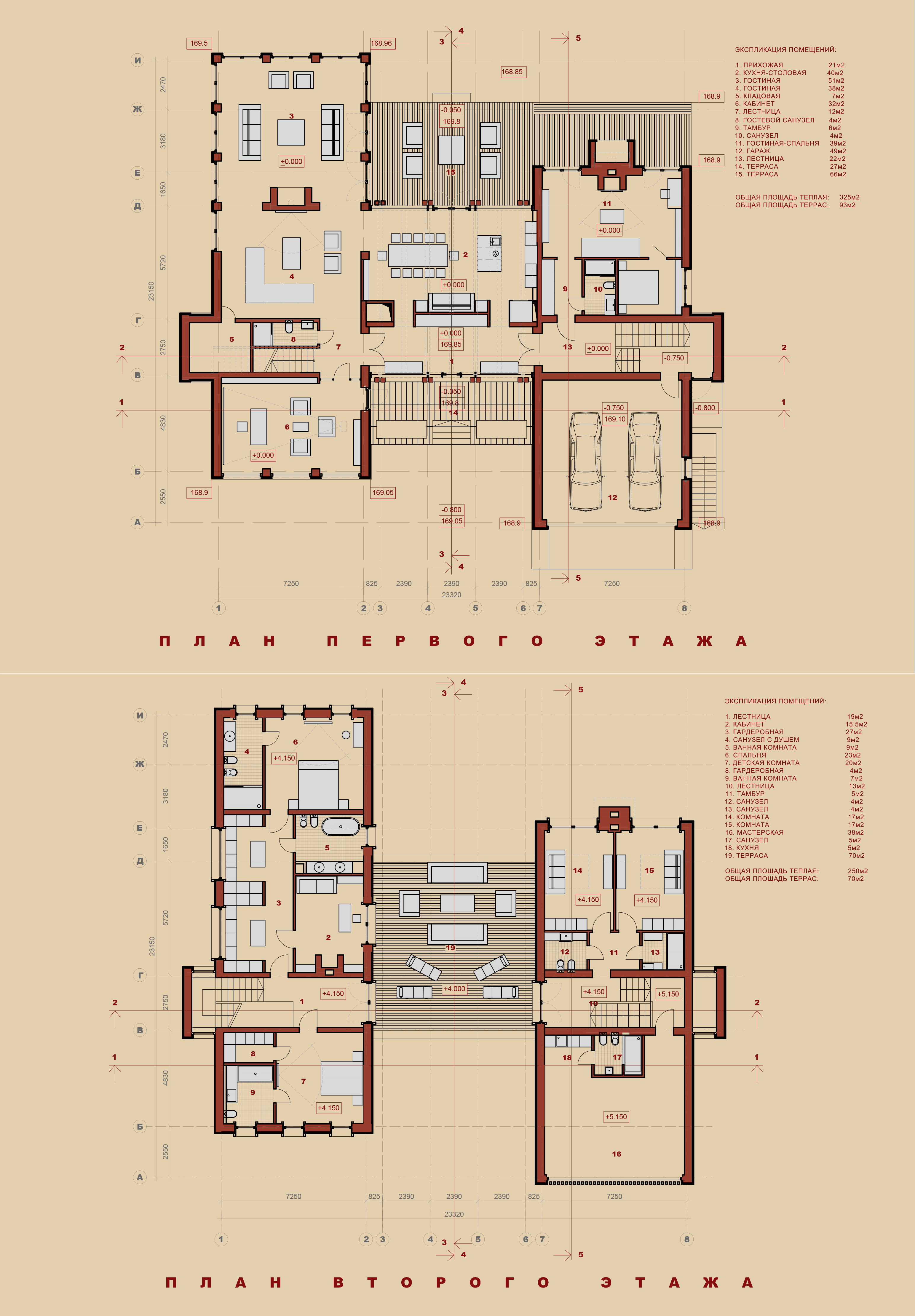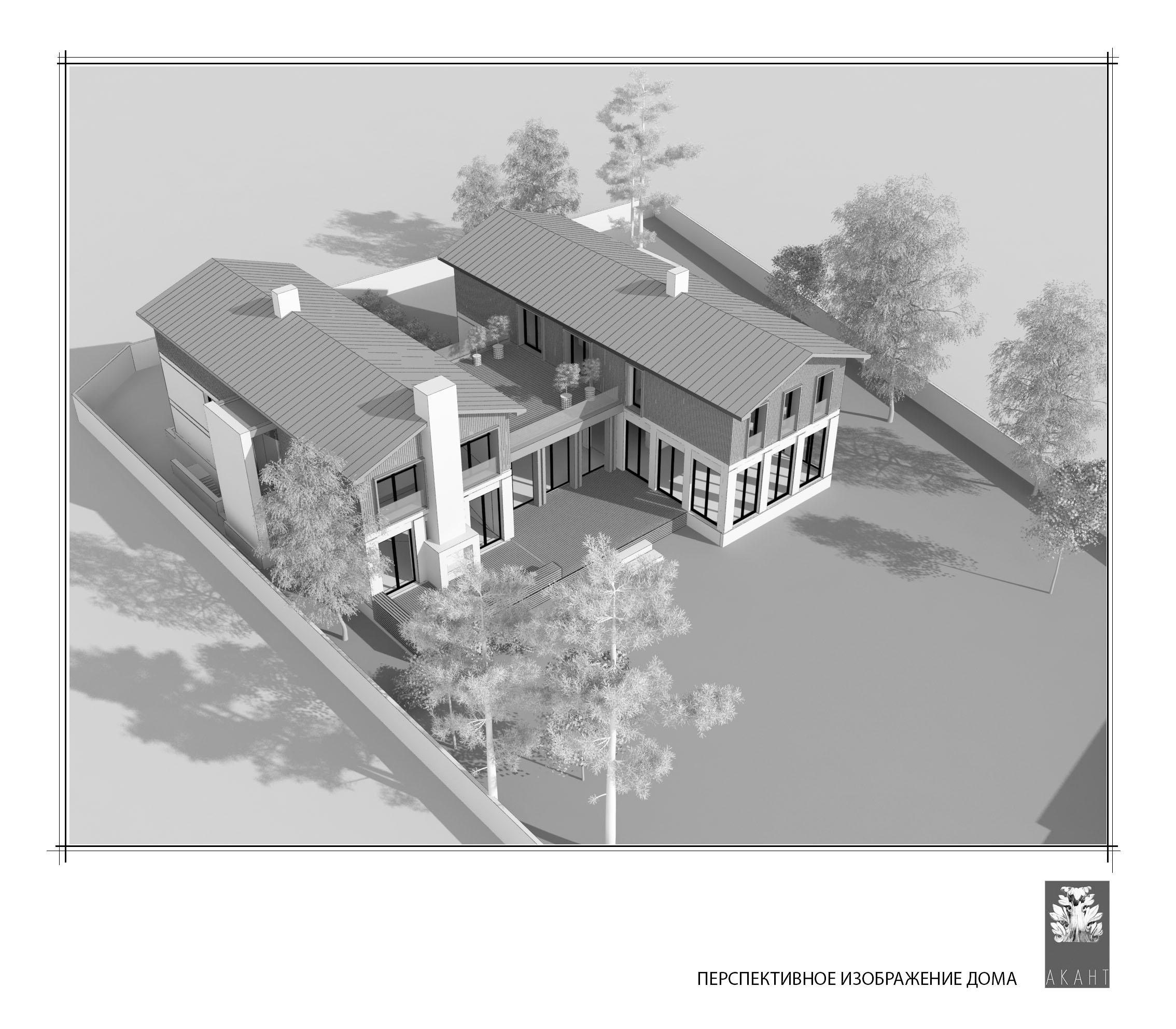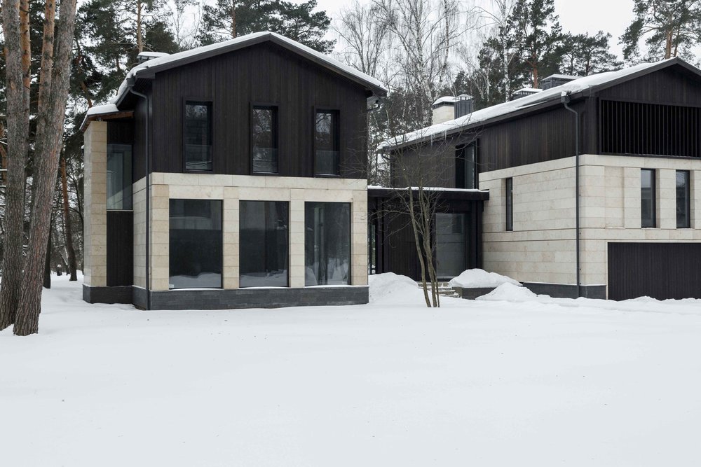 Private house in the village of Lipki. Architectural project of the house. Total area 600 m2. Collaboration with the Akant architectural bureau.